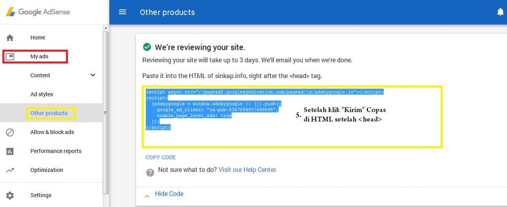 - Tunggu tahap proses rewiew oleh google adsense dalam waktu 3 x 24 jam.