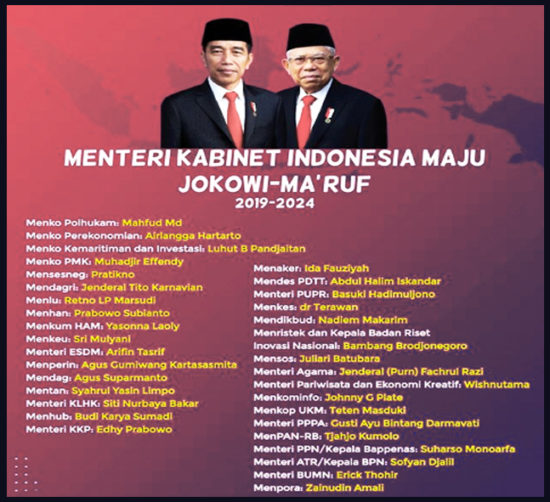 JAKARTA, lexario.biz – Presiden Joko Widodo didampingi wakilnya, Ma’ruf Amin mengumumkan nama-nama menteri di Kabinet Indonesia Maju pagi ini di halaman Istana Kepresidenan. Sebelumnya, Presiden Jokowi sudah memanggil 34 nama yang bakal mengisi jabatan selama masa pemerintahannya di periode kedua ini.