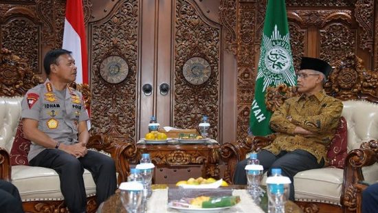 JAKARTA, lexario.biz –– Kapolri Jenderal Polisi Idham Azis temui Ketua Umum PP Muhammadiyah Haedar Nasir pada Kamis, (21/11/119). Kunjungan ini sebagai upaya meningkatkan kerjasama antara kepolisian dan organisasi kemasyarakatan. Pertemuan ini diharapkan berdampak pada upaya mewujudkan Indonesia maju, aman, dan damai di tengah jalinan keberagaman.