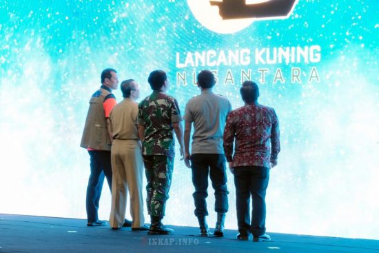 Peresmian aplikasi Lancang Kuning nusantara ditandai dengan penekanan tombol bersama, selanjutnya Panglima dan Kapolri melakukan komunikasi dengan petugas dilapangan melalui aplikasi yang baru saja di lounching.(*)