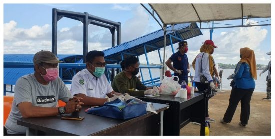 INHIL, lexario.biz– Untuk mencegah Covid 19 camat beserta tim gugus dan relawan Kecamatan Kateman melakukan pemantauan serta pemeriksaan kesehatan bagi penumpang yang menggunakan speed boat dan motor pompong di Dermaga Laskar Melayu dan Dermaga HK Sungai Guntung, Minggu, (12/04).