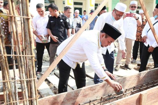 LABUHANBATU, lexario.biz – Bupati Labuhanbatu H.Andi Suhaimi Dalimunthe ST.MT, didampingi kepala Dinas Penanaman Modal dan Pelayanan Perizinan Terpadu satu pintu (DPMPTSP) Faisal Amri Siregar melakukan peletakan batu pertama pembangunan menara Masjid Jami’ Amaliyah Desa Sei rakyat Kecamatan Panai Tengah, yang disaksikan langsung oleh masyarakat Desa Sei Rakyat, OKP, Ormas, Tokoh Masyarakat, Tokoh Agama, Camat Panai Tengah, OPD dan Para Asisten, Sabtu (18/07).