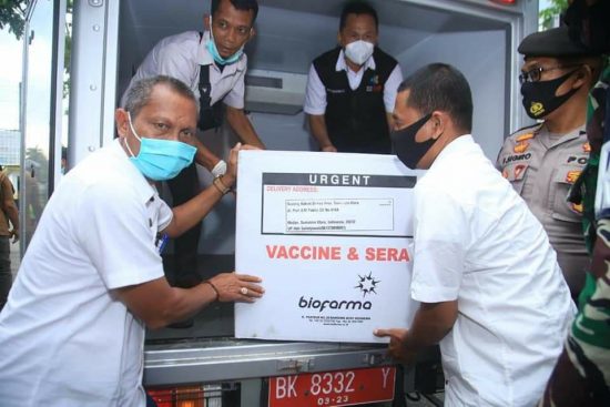 LABUHANBATU, lexario.biz – Disambut langsung oleh asisten 1 pemerintahan Kabupaten Labuhanbatu Drs.Sarimpunan Ritonga, M.Pd, dan beberapa OPD Kabupaten Labuhanbatu, Tim penjemput Vaksin Covid-19 yang dipimpin Kaban BPBD Atiya Muchtar Maulana Hasibuan tiba di halaman Kantor Bupati Kabupaten Labuhanbatu dengan 5080 vial vaksin covid -19, Rabu (3/2).