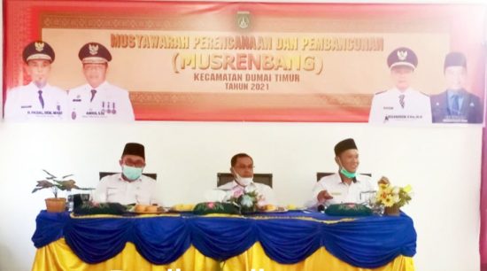 Musrenbang tingkat kecamatan Dumai Timur membahas pengusulan rencana pembangunan yang akan di lanjutkan pengerjaannya pada anggaran tahun 2021-2022.