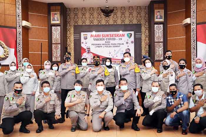 MEDAN, lexario.biz – Upaya mendukung program pemerintah menanggulangi penyebaran dan pencegahan Covid-19, Kepolisian Daerah (Polda) Sumatera Utara dan jajaran terus mempercepat proses vaksinasi kepada seluruh personil.