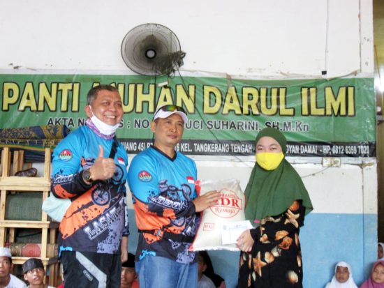 Om Oyon salah satu sesepuh Lasak Gowes Club Pekanbaru memberikan kata sambutan dan kemudian penyerahan santunan sembako, yang diberikan oleh Om Yusran selaku Ketua Lasak Gowes Club Pekanbaru dan langsung diterima oleh Bunda Fitri.