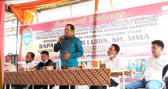 SIANTAR, lexario.biz – Dewan Perwakilan Rakyat Daerah (DPRD) gelar acara sosialisasi Peraturan Daerah Provinsi Sumatera Utara No. 1 Tahun 2019 tentang fasilitasi pencegahan penyalahgunaan narkotika, Sabtu (27/3) pagi bertempat di Jalan Sipirok No 47, Timbang Galung, Kec. Siantar Barat, Pematangsiantar.