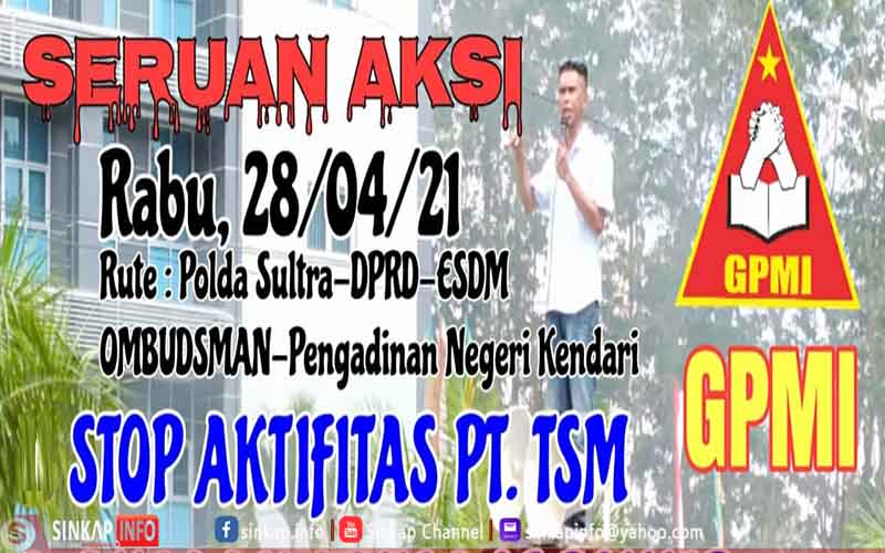 Untuk itu, imbau Alfin, kami mengajak segenap kader Gerakan Persatuan Mahasiswa Indonesia (GPMI) agar bersama-sama turun ke jalan untuk meminta kepada Polda Sultra dan Dinas ESDM Sultra menghentikan aktifitas PT. TSM, karena dokumen yang digunakan untuk menambang cacat secara hukum.