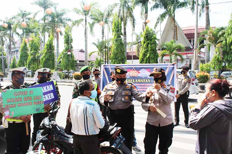 Pada Kesempatan ini AKP Muri Yasnal SH memberikan sosialisasi Operasi Kepolisian Kewilayahan Toba 2021 ini melalui media elektronik radio, Spanduk imbauan, Pembagian pamflet dilarang mudik dan patuhi prokes, imbauan melalui media stiker serta memberikan teguran kepada masyarakat yang melanggar peraturan berlalu lintas.