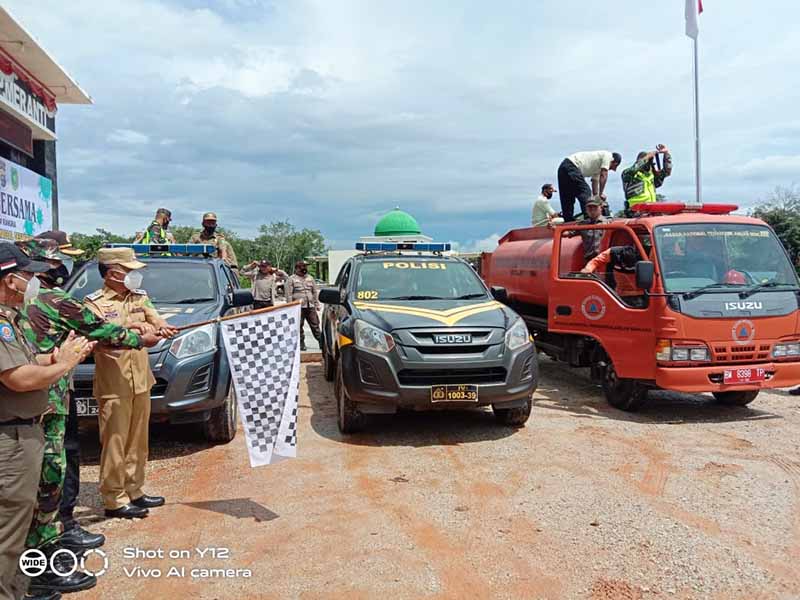 Pelepasan penyemprotan Disinfektan langsung dilakukan oleh Wabup Meranti didampingi Wakapolres Meranti yang ditandai dengan pengibaran bendera start.