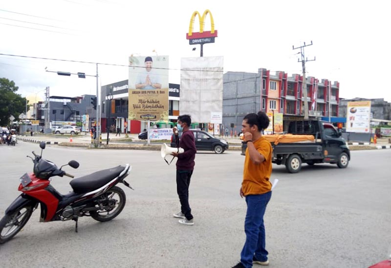 Gerakan Aksi tersebut GMM Sultra menyampaikan pernyataan sikap dengan tuntutan kepada Pemerintah kota Kendari untuk menghentikan sementara Mc Donald’s untuk beroperasi.