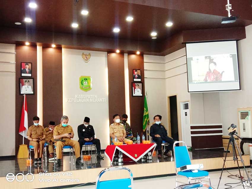 MERANTI, lexario.biz – Pemerintah Kabupaten Kepulauan Meranti dalam hal ini Wakil Bupati AKBP Purn H. Asmar, mengikuti Teleconference bersama Presden RI Joko Widodo dan Wakil Presiden H. Ma’ruf Amin, Menteri Dalam Negeri M. Tito Karnavian, dan Menteri Kabinet lainnya, Senin (17/5).