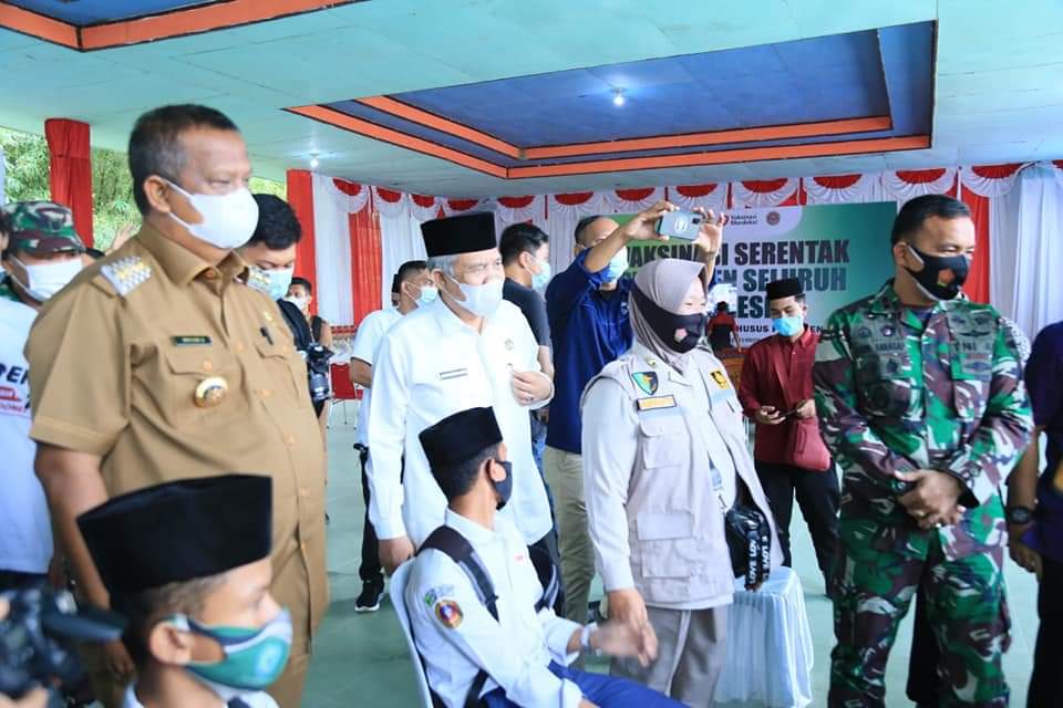 Dalam kegiatan tersebut Pj upati Labuhanbatu Muliyadi Simatupang,S.Pi, M.Si, bersama Kapolres Labuhanbatu AKBP Deni Kurniawan, SIK. MH, Dandim 0209/lb Letkol Inf Asrul Kurniawan Harahap, SE. MTr, (Han) Kepala Kantor Kemenag Labuhanbatu Drs. Safiruddin, M.Pd, Staf Kepresidenan RI Ahmad Ridwan Hasibuan memantau dan bercengkrama dengan para Santri peserta vaksin dan dilanjutkan dengan video confrence bersama Presiden RI Jokowi Dodo terkait laporan vaksin dari seluruh Indonesia.
