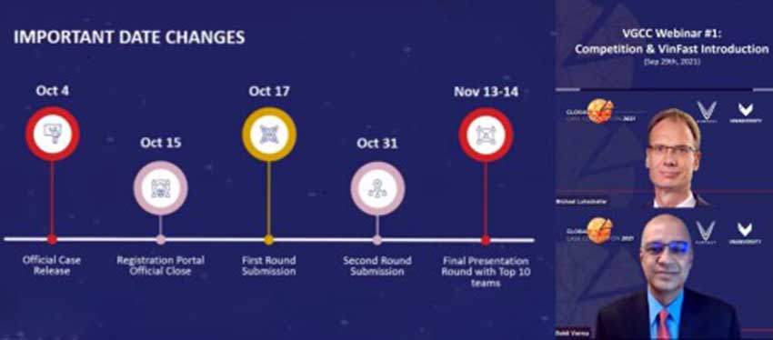 Rencananya, setiap tahun VGCC akan berkolaborasi dengan bisnis untuk membuat studi kasus yang realistis. Tema VGCC 2021 adalah “VinFast–Go Global”: Bagaimana VinFast – bisnis muda Vietnam – memimpin gerakan “hijau” dan membangun kehadiran permanen di pasar AS dengan model kendaraan listriknya. Metodologi dan kasus kompetisi dirancang dengan konsultasi dari Cornell University, lembaga Ivy League kelas dunia.