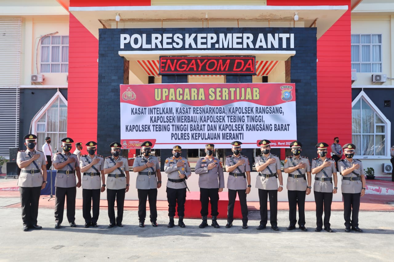 Sertijab Kasat Intelkam, Kasat Narkoba, Kapolsek Tebingtinggi, Kapolsek Tebingtinggi Barat, Kapolsek Merbau, Kapolsek Rangsang Barat, dan Kapolsek Rangsang tersebut menindaklanjuti Surat Telegram Kapolda Riau Nomor : ST/318/III/KEP/2022, Tanggal 14 Maret 2022 tentang Pemberhentian dari Pengangkatan dalam Jabatan dilingkungan Polda Riau.