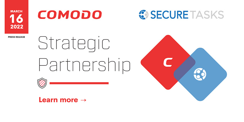 Cameron McEachern, CEO SecureTasks mengatakan, “Kami sangat senang untuk mengintegrasikan teknologi unik Comodo ke dalam platform kami.”