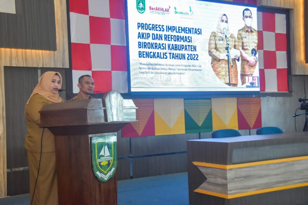 BENGKALIS, lexario.biz – Bupati Bengkalis Kasmarni bersama Wakil Bupati Bengkalis H Bagus Santoso dan para perangkat daerah, mengikuti Rapat Evaluasi Reformasi Birokrasi dan Implementasi Sistem Akuntabilitas Kinerja Instansi Pemerintah (SAKIP), Senin, 15/08.