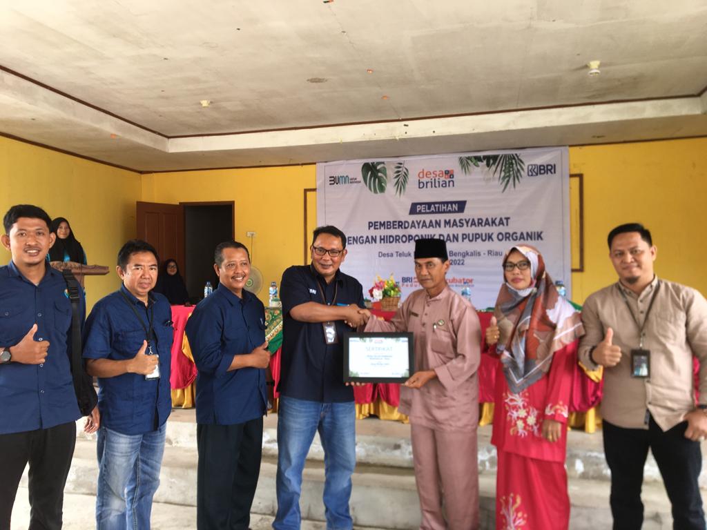 Penobatan tersebut, dilakukan penyerahan sertifikat Desa Brilian dan Reward dari Bank BRI kepada Desa Teluk Pambang dan BUMDes yang mana ini adalah puncak dari seluruh kegiatan seleksi Desa BRILian Tahun 2020.
