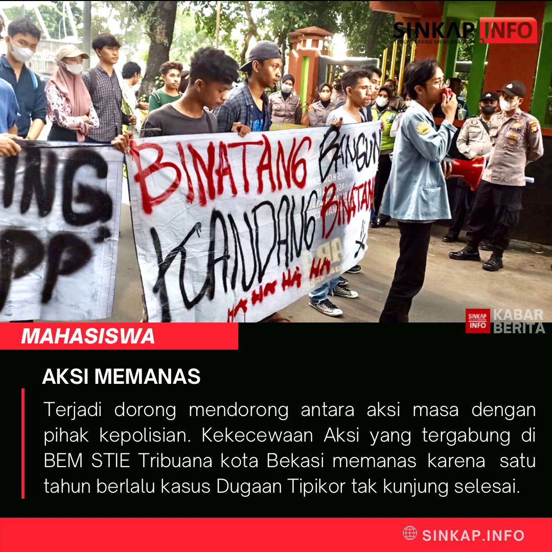 Gedung pemerintahan kota Bekasi digruduk BEM STIE Tribuana menuntut persoalan dugaan Tindak Pidana Kasus Korupsi ditubuh Dinas Ketahanan Pangan Pertanian dan Perikanan (DKPPP) kota Bekasi.