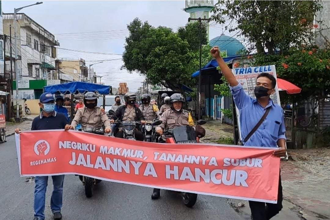 Regehamas melakukan Aksi Unjuk Rasa turun ke jalan mendesak Gubernur Sumatera Utara Edy Rahmayadi untuk segera memperbaiki Jalan Ade Irma Pematang Siantar yang telah mengalami kerusakan parah.