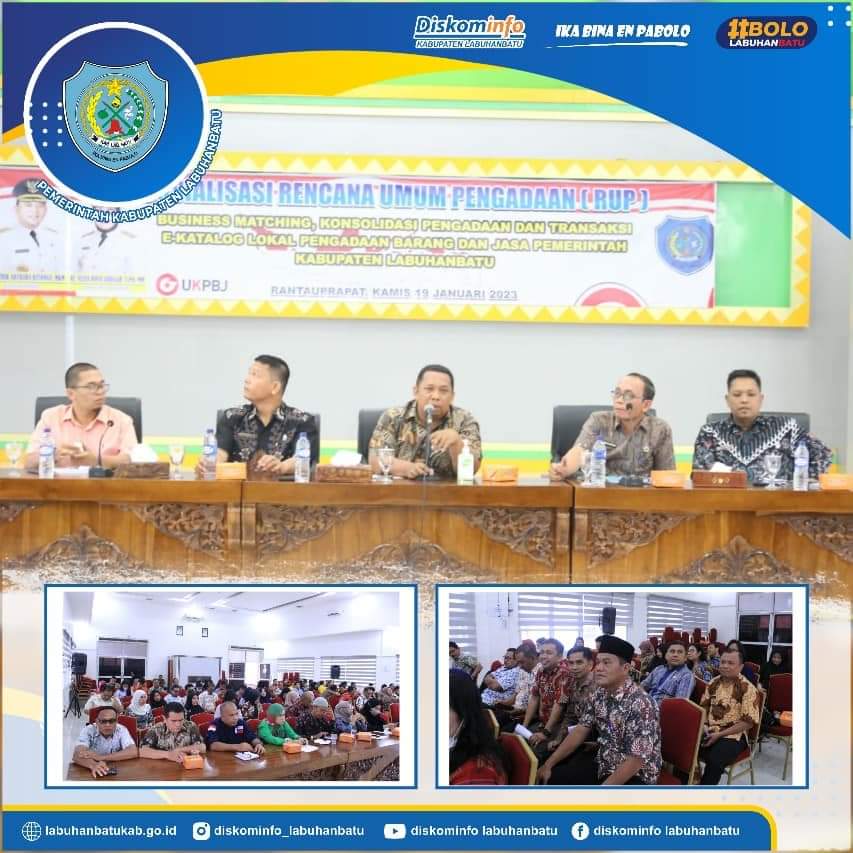 LABUHANBATU, lexario.biz – Mewakili Bupati Labuhanbatu, Asisten II Perekonomian Setdakab Labuhanbatu Drs. Ikramsyah Putra Nasution, MM., membuka kegiatan Sosialisasi Rencana Umum Pengadaan (RUP) Business Matching, Konsolidasi Pengadaan dan Transaksi E-Katalog Lokal Pengadaan Barang dan Jasa Pemerintah Kabupaten Labuhanbatu di Ruang Data dan Karya Kantor Bupati Labuhanbatu, Kamis (19/1).