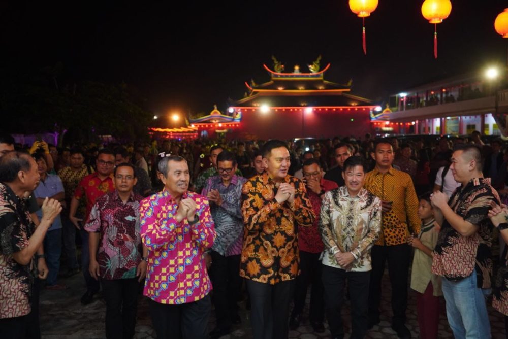 DUMAI, lexario.biz – Perayaan tahun baru Imlek di Klenteng Hock Liong Kiong, Dumai pada Jum’at (27/01) malam terasa meriah karena dihadiri langsung Gubernur Riau (Gubri) Syamsuar dan Kapolda Riau Irjen Pol Muhammad Iqbal.