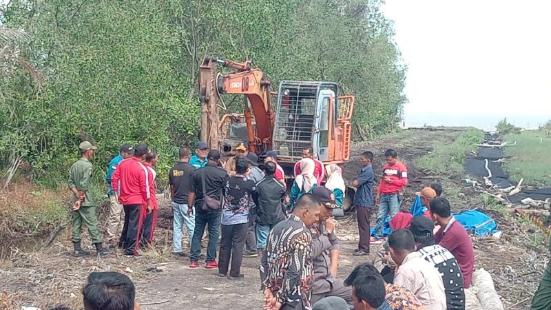 Selain itu, juga terlihat di lapangan alat berat yang sudah siap untuk melaksanakan pekerjaan di lokasi. Sementara para pihak yang ingin membangun tambak udang sama sekali tidak terlihat. Namun upaya awal yang dilakukan oleh Ketua Tim DLH Agus sempat menguhubungi pihak yang mengaku selaku pemilik berinisial MN yang saat itu katanya sedang berada di malaysia.