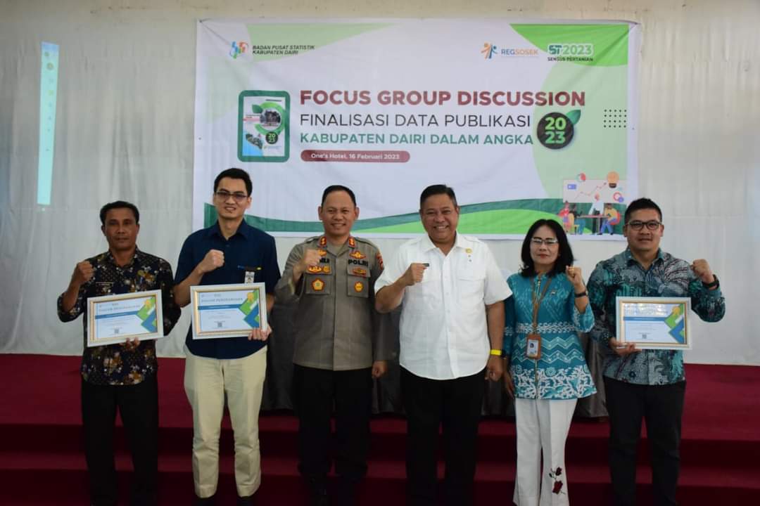 Penyerahan penghargaan ini dilakukan dalam rangkaian kegiatan Focus Group Discussion (FGD) Dairi Dalam Angka Tahun 2023 di The Ones Hotel, Sidikalang, Dairi Sumatra Utara kemarin.