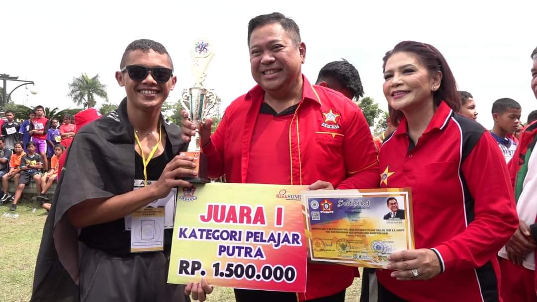DAIRI, lexario.biz – Horas Sitanggang, pelajar dari SMK Negeri 1 Sitinjo, Kabupaten Dairi berhasil meraih juara I kategori pelajar Putra, pada kejuaraan open lari 10 KM (Marathon) memperebutkan piala EKAB yang diselenggarakan oleh Dewan Pimpinan Cabang (Depicab) Soksi Kabupaten Dairi, dengan rekor waktu 37 menit 45 detik, Minggu (19/3).