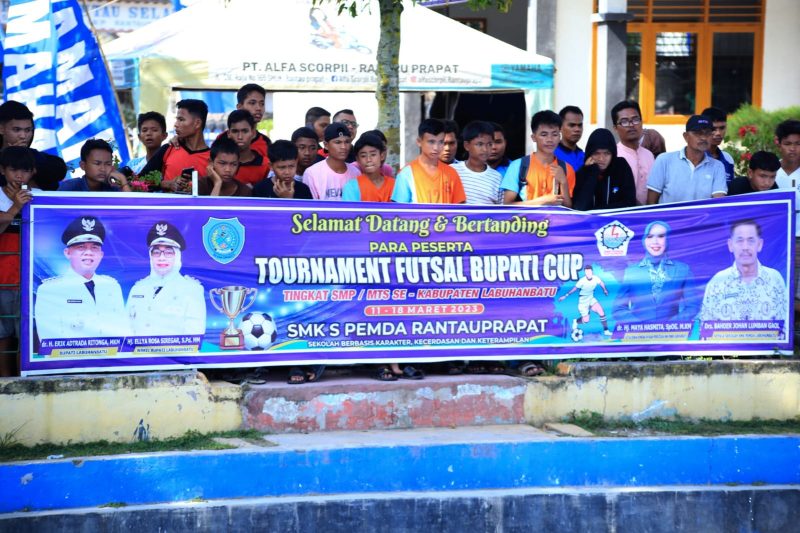 LABUHANBATU, lexario.biz – Bupati Labuhanbatu dr. H. Erik Adtrada Ritonga, MKM melalui Kepala Dinas Perumahan Rakyat dan Kawasan Permukiman Ir. Hasan Heri membuka Tournamen Futsal Bupati Cup tingkat SMP dan MTS se Labuhanbatu Tahun 2023, di halaman SMKS Pemda Rantauprapat. Minggu (12/3).