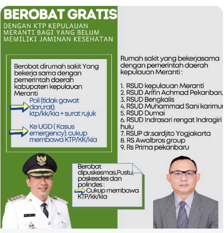 Kecuali dalam keadaan darurat, pasien masuk ke IGD maka cukup menunjukkan KTP Meranti,” jelasnya.