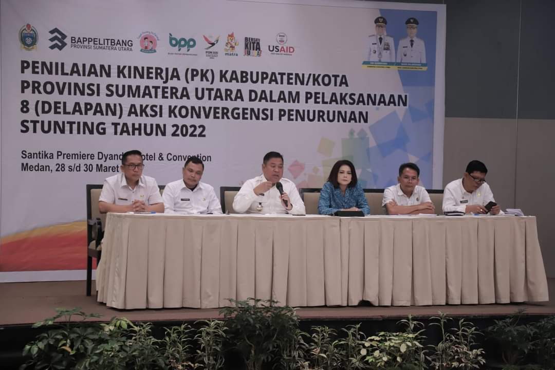 Demikian disampaikan Bupati Edy Berutu pada penilaian kinerja kabupaten/kota Provinsi Sumatera Utara dalam pelaksanaan 8 aksi konvergensi penurunan stunting tahun 2022 di Santika Premiere Dyandra Hotel dan Convention Medan, Rabu (29/3).