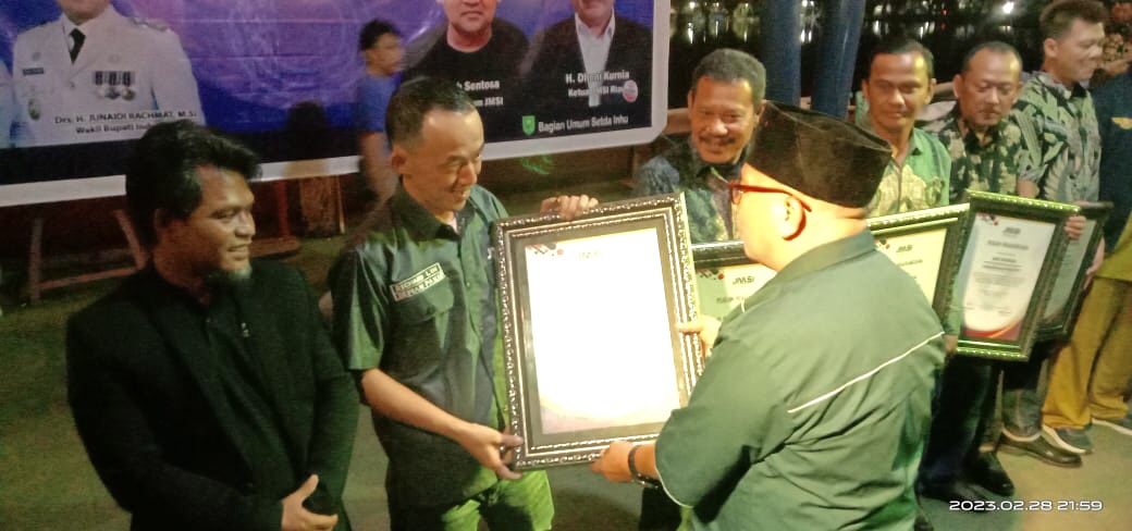 INHU, lexario.biz – Dewan Pakar Jaringan Media Siber Indonesia (JMSI) kabupaten Kepulauan Meranti, Richard lim dan Harunsen siregar menerima anugerah pada malam puncak Perayaan Hari Ulang Tahun JMSI Riau bertempat di Danau Raja kota Rengat kabupaten Indragiri hulu, Selasa (28/02).