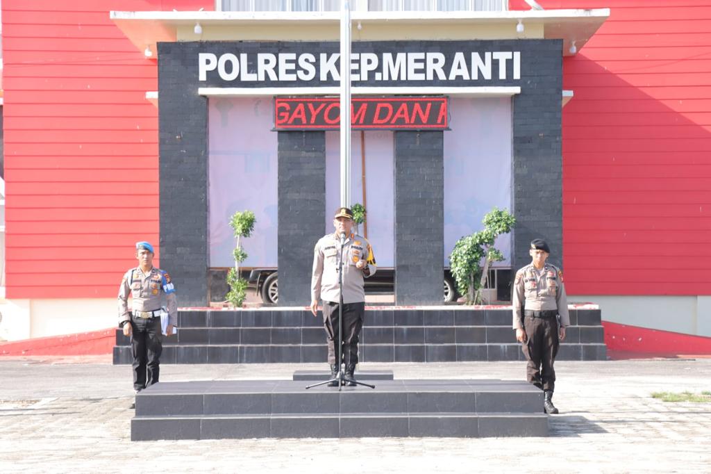 Kemudian juga dilakukan pengecekan sikap tampang personel Polres Kepulauan Meranti sebagai wujud kesiapan dalam melaksanakan tugas kepolisian.