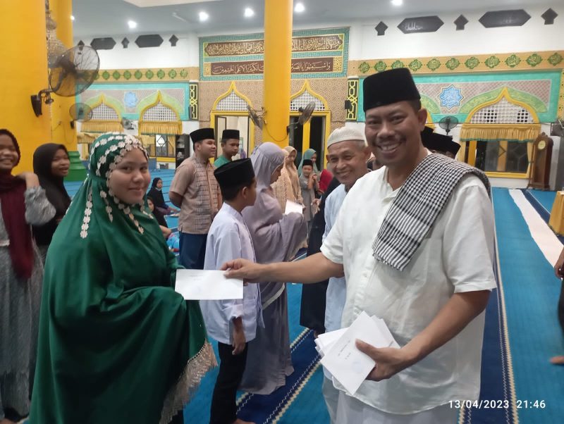 BENGKALIS, lexario.biz – Usai sholat Tarawih tepatnya 22 ramadhan 1444 H, pengurus Masjid Al-Mubarak menyerahkan santunan kepada 60 anak yatim dari 11 RT (Rukun Tetangga) dari Desa Senggoro, Kecamatan Bengkalis, Kabupaten Bengkalis, Kamis (13/4).