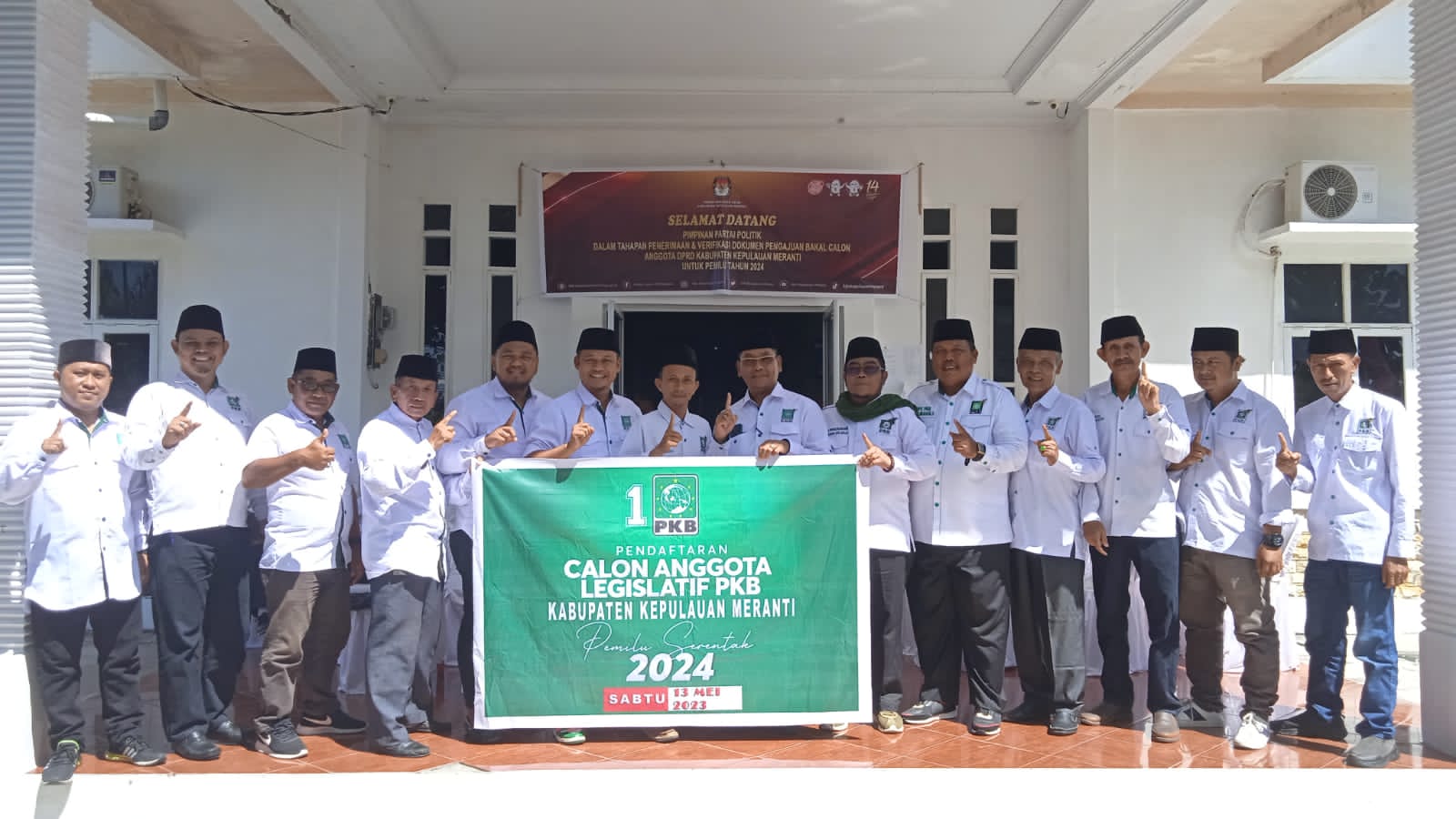 Rombongan calon anggota legislatif didaftarkan langsung oleh Ketua dan Sekretaris DPC PKB Kepulauan Meranti Dr. H. Hafizan Abbas. MPd dan Kyai Khusairi. M.Pdi di dampingi sejumlah pengurus dan Caleg.