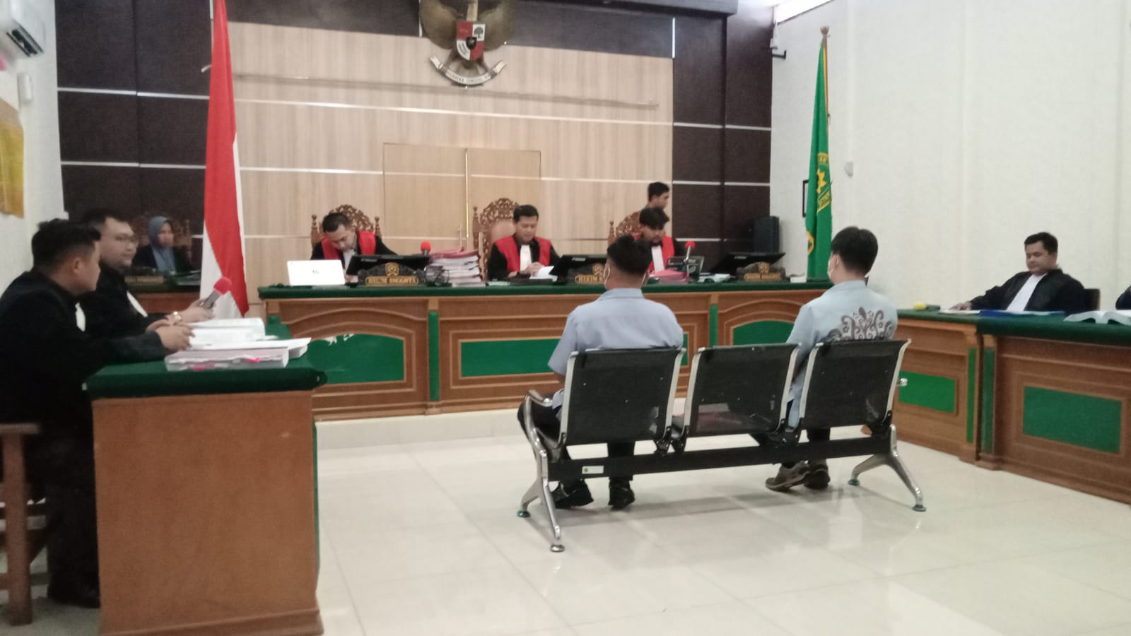 Sidang yang dipimpin Ketua Majelis Hakim, Bayu Soho Rahardjo dan dua hakim anggota, bersama dua JPU kejari Bengkalis secata luring dan dua JPU dari Kejagung secara daring. Sedangkan dua terdakwa Erik Kurniawan (Direktur) dan Agus Nugroho (GM) yang dihadirkan langsung di kursi pesakitan didampingi kuasa hukumnya, Marnalom Hutahaean SH MH.