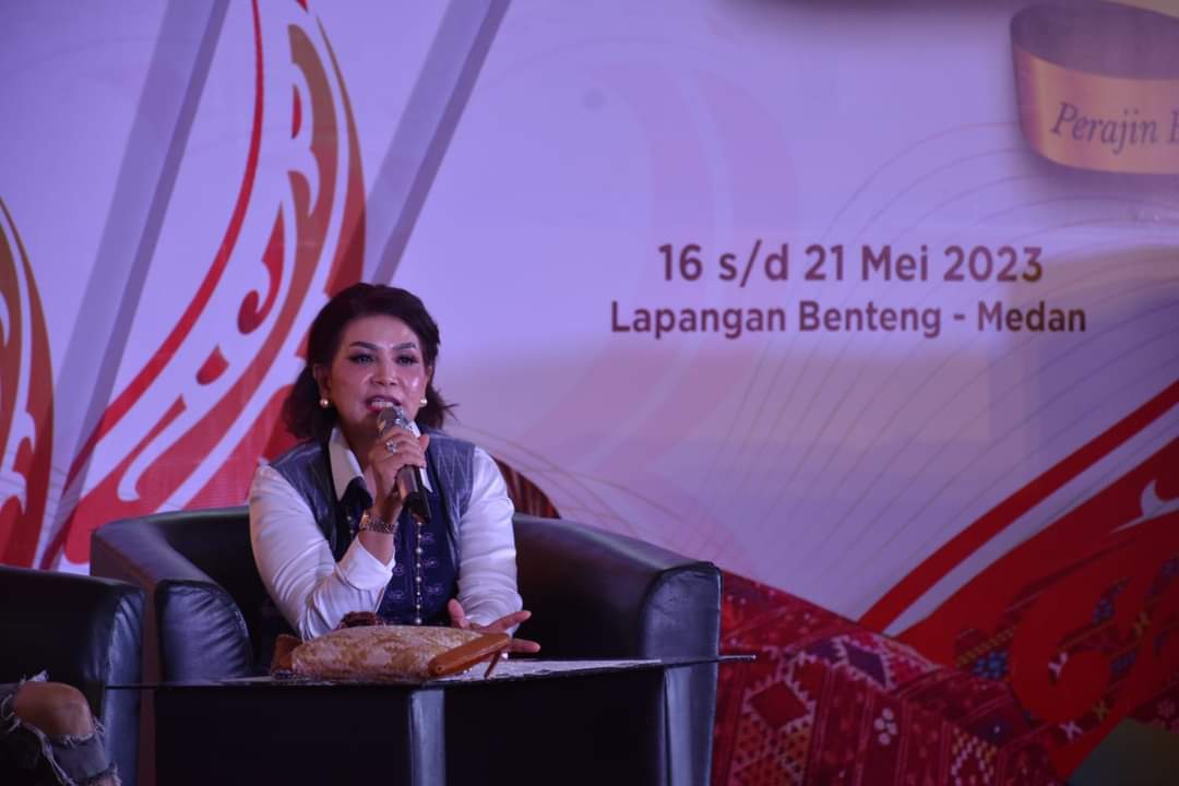 MEDAN, lexario.biz – Ketua Dewan Kerajinan Nasional Daerah (Dekranasda) Kabupaten Dairi Romy Mariani Simarmata- Ny.Eddy Berutu menjadi salah satu narasumber dalam talkshow dalam peringatan HUT Dekranas ke-51 di Lapangan Merdeka, Kota Medan Selasa (16/5) kemarin.