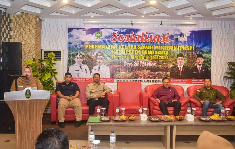 Bupati Bengkalis Kasmarni hadir dan membuka secara resmi sosialisasi tersebut dan mengajak semua pihak untuk bersama memperkuat sinergi, koordinasi, pemahaman serta menyamakan persepsi dalam merealisasikan pelaksanaan program peremajaan kelapa sawit rakyat ini.