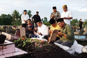 Setiba di Selatpanjang, Gubernur Syamsuar bersama rombongan langsung ke pemakaman anggota DPRD Riau dari Partai Golkar itu. Beralaskan goni pelastik warna putih, ketua DPD I Partai Golkar tersebut, tampak khusuk berdoa di depan makam Amyurlis.