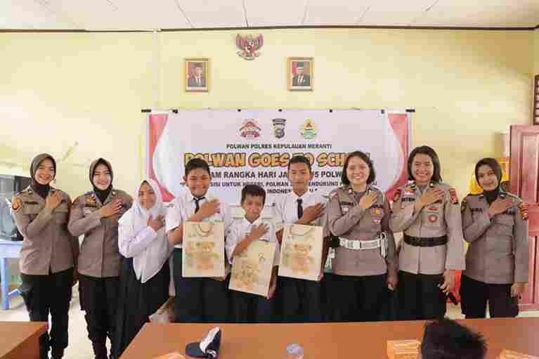 MERANTI, SINKA.info – Polwan Polres Kepulauan Meranti Polda Riau, Senin (7/8) pagi, menggelar giat Police Goes to School dalam rangka Hari Jadi Polwan ke-75.
