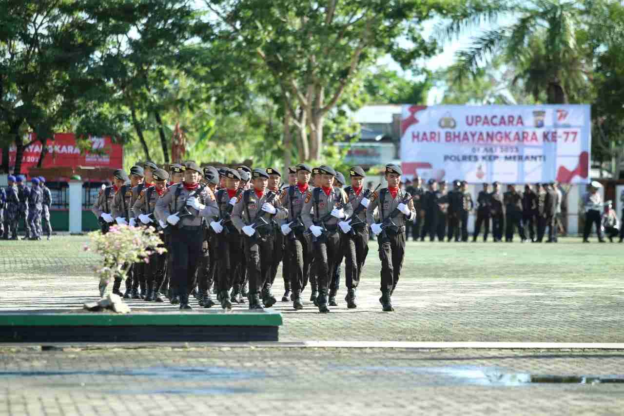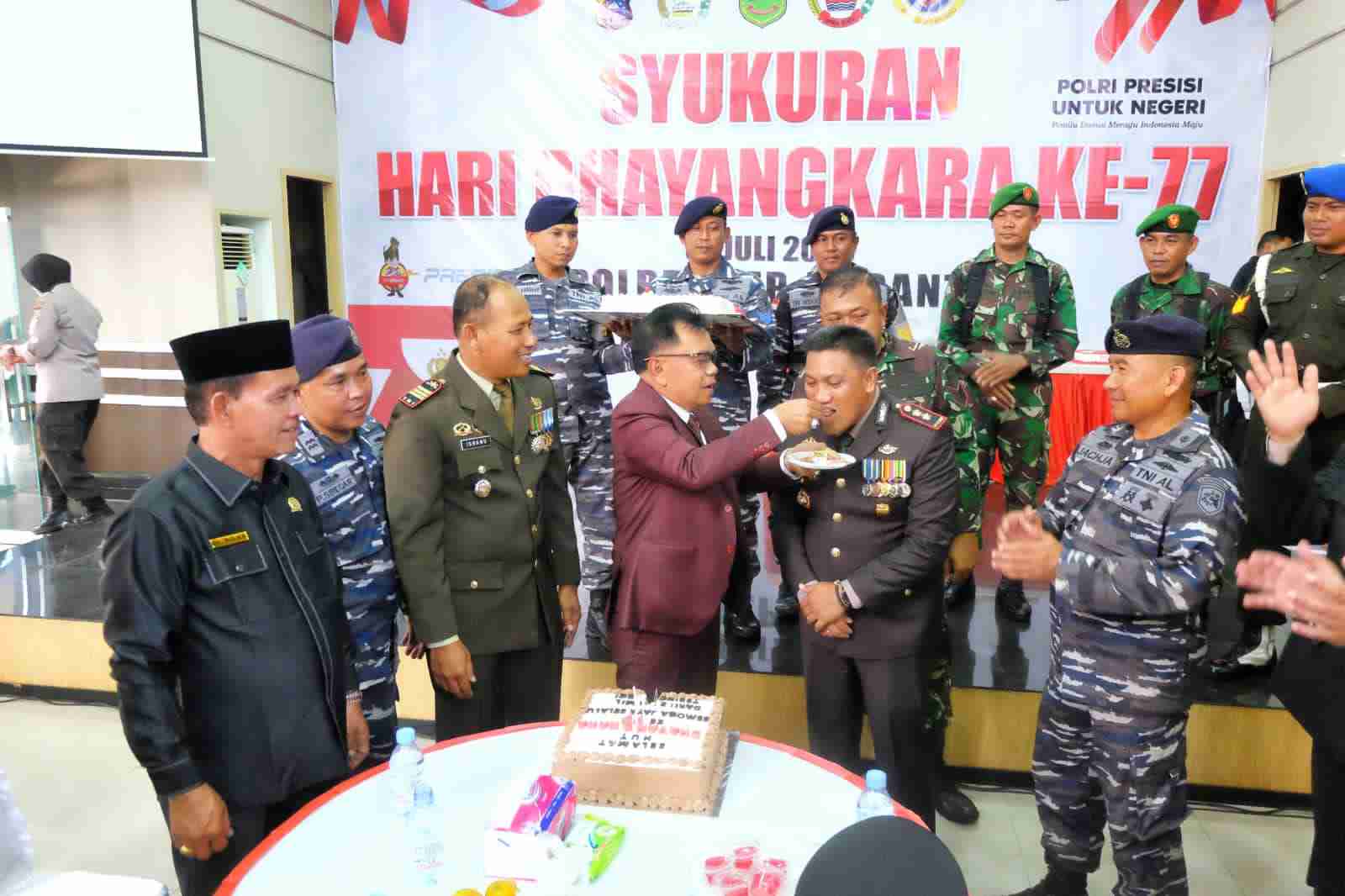 Usai upacara yang dipimpin langsung oleh Kapolres Kepulauan Meranti AKBP Andi Yul LTG, kegiatan dilanjutkan dengan syukuran di Aula Kantor Bupati Kepulauan Meranti. AKBP Andi Yul LTG menyampaikan ucapan terima kasih kepada Plt. Bupati dan jajaran Forkopimda Meranti yang terus bersinergi mendukung pelaksanaan tugas Kepolisian.