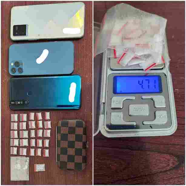Kemudian tim melakukan penangkapan dan pengeledahan Tsk 1 ditemukan 27 (dua puluh tujuh) bungkus plastik pack berisi diduga narkotika jenis sabu berat 4.71 gram, 1 (satu) buah dompet kecil warna coklat, dan 1 (satu) unit handphone android warna biru.