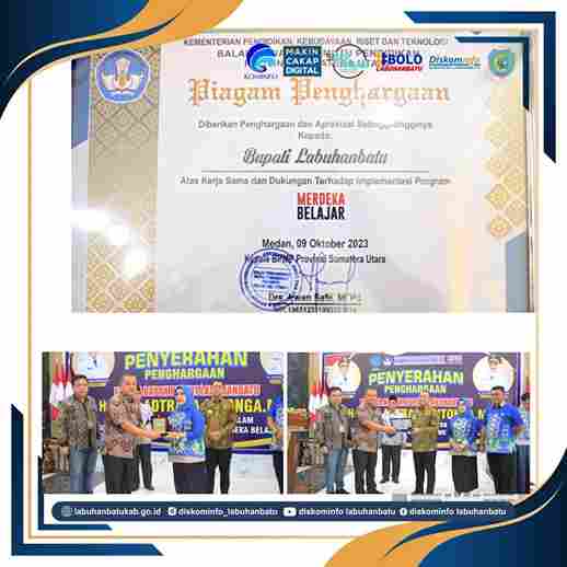 Kepala Dinas Pendidikan Labuhanbatu Asrol Aziz Lubis SE.,M.A.P., mengatakan berkat bimbingan dan arahan Bapak Bupati Labuhanbatu, Dinas Pendidikan terus bekerja keras dalam mensukseskan program Merdeka Belajar. Piagam penghargaan ini adalah bentuk komitmen kita semua dalam memBolo pendidikan di Kabupaten Labuhanbatu.
