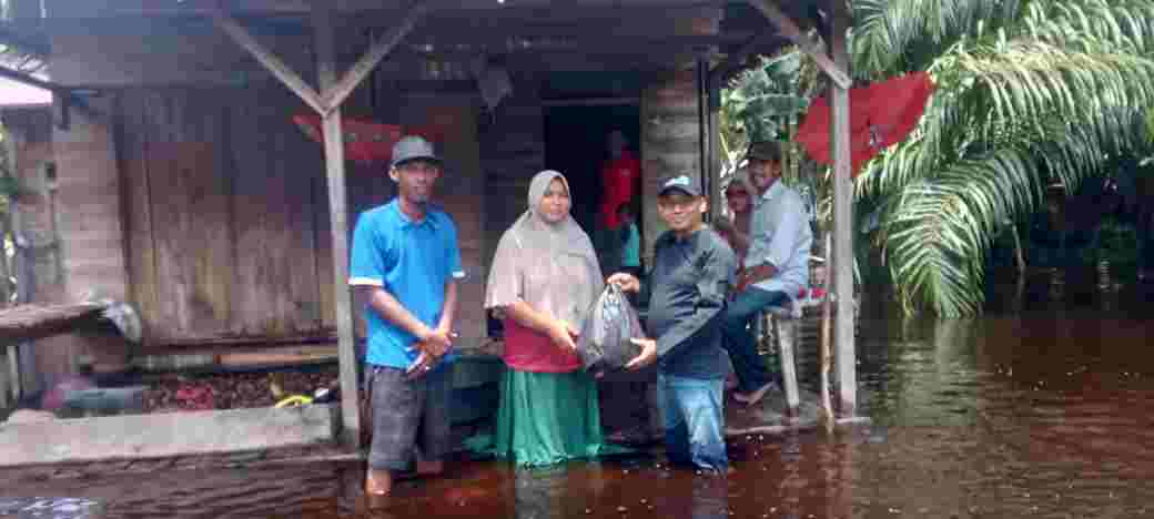 Bantuan tersebut disalurkan kepala desa Kembung Luar Jamaludin melalui Sekdes Faizan langsung diserahkan ke warga yang terdampak parah banjirnya. Rabu (25/10).