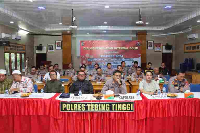 TEBING TINGGI, lexario.biz – Polres Tebing Tinggi bersama tokoh masyarakat, tokoh pemuda, Badan Pengawas Pemilu (Bawaslu) Tebing Tinggi, dan Komisi Pemilihan Umum (KPU) Tebing Tinggi menggelar Zoom Meeting dialog publik “ Pilpres 2024 memperkuat pemilu damai dan demokrasi menuju indonesia maju “ Rabu, ( 11/10), di Aula Polres Tebing Tinggi jalan Pahlwan.