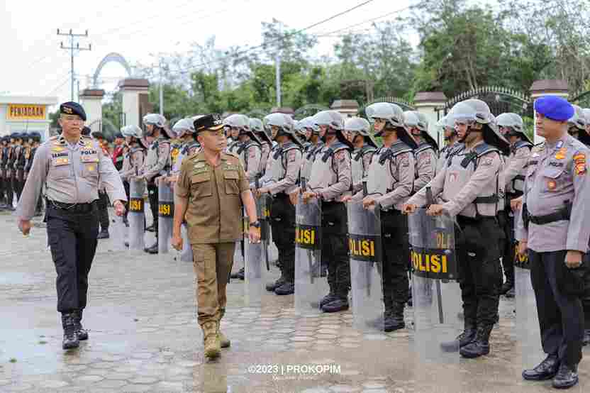 MERANTI, lexario.biz – Pelaksana tugas (Plt) Bupati Kabupaten Kepulauan Meranti AKBP (Purn) H. Asmar pimpin apel gelar pasukan kesiapan pengamanan kampanye pada Pemilu 2024 dalam rangka operasi mantap Brata Lancang Kuning 2023-2024 di Kabupaten Kepulauan Meranti.