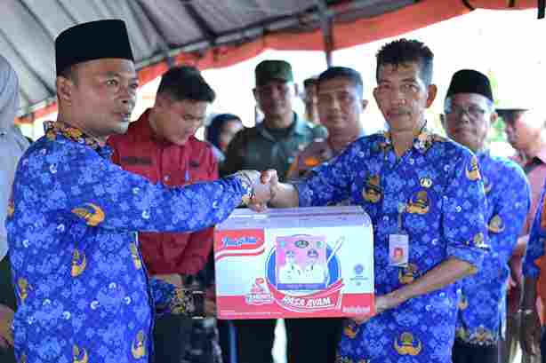Bantuan sembako itu diserahkan secara simbolis Bupati Bengkalis diwakili Staf Ahli Bupati Bengkalis Johansyah Syafri kepada 7 kepala desa.