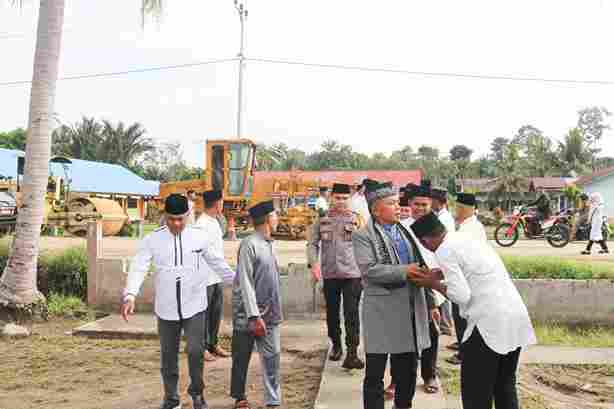 Usai memperingati Isra Mikraj, Plt Bupati Asmar didampingi sejumlah kepala OPD dan pejabat lainnya meninjau progres pembangunan yang sedang berjalan di Desa Penyagun.