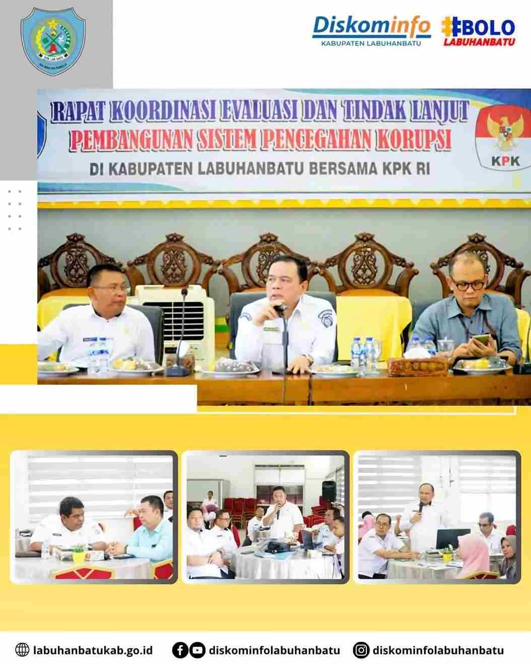 LABUHANBATU, lexario.biz – Pemerintah Kabupaten Labuhanbatu menggelar rapat koordinasi evaluasi dan tindak lanjut pembangunan sistem pencegahan korupsi bersama Komisi Pemberantasan Korupsi (KPK) Republik Indonesia, di Ruang Data dan Karya Kantor Bupati. Rabu (24/4).